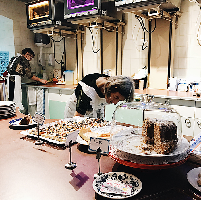 Jeśli nieustannie marzycie o gorącym cieście, wyciąganym przez Waszą babcię z piekarnika… oto Wasz raj. W Voll Pension torty i desery przygotowywane są na bieżąco przez przesłodkie, starsze panie, a samo miejsce utrzymane jest w stylistyce Domu Dziadków. Ramki ze zdjęciami, stare meble, dziergane obrusy i doskonała kawa – nie możecie tego ominąć.