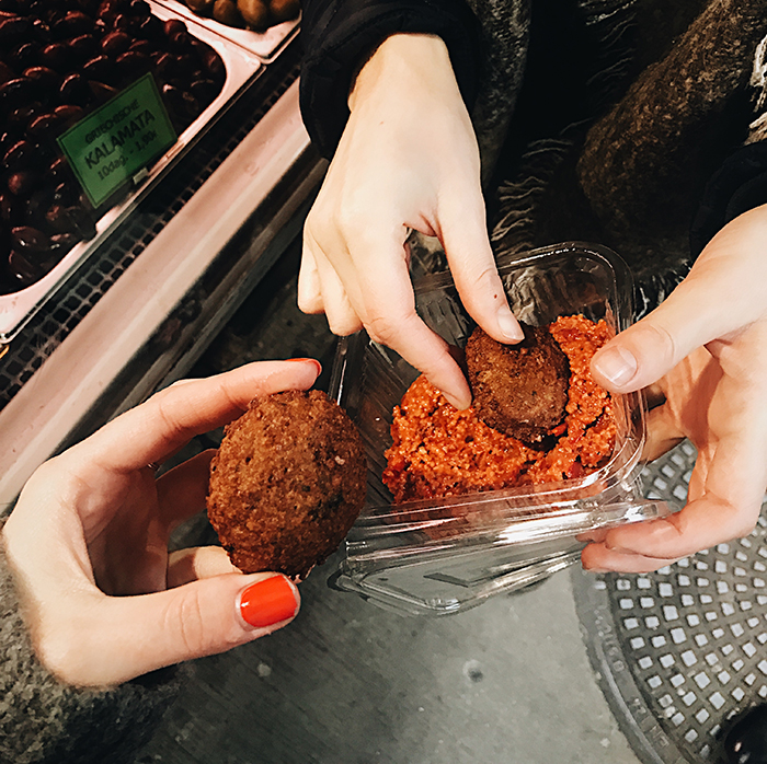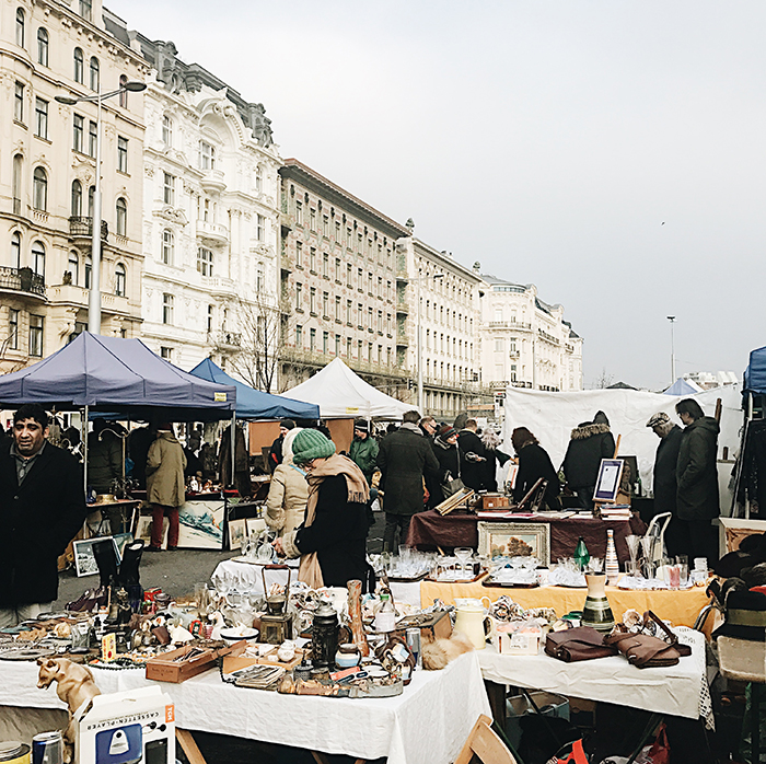Najsłynniejszy wiedeński targ, ze niezliczonymi stoiskami oferującymi owoce, warzywa i inne lokalne pyszności. Będąc na Naschtmarktcie, koniecznie spróbujcie pachnący falafeli z wybranym przez siebie hummusem (1 EUR za 4 falafele +1,80 EUR za hummus). Do wyboru: curry, mango, chilli, wasabi i klasyczny. Jest w czym wybierać! Dodatkowo, w każdą sobotę na tyłach targu odbywa się targ staroci, na którym znajdziecie vintage ubrania, dodatki, a także płyty winylowe.