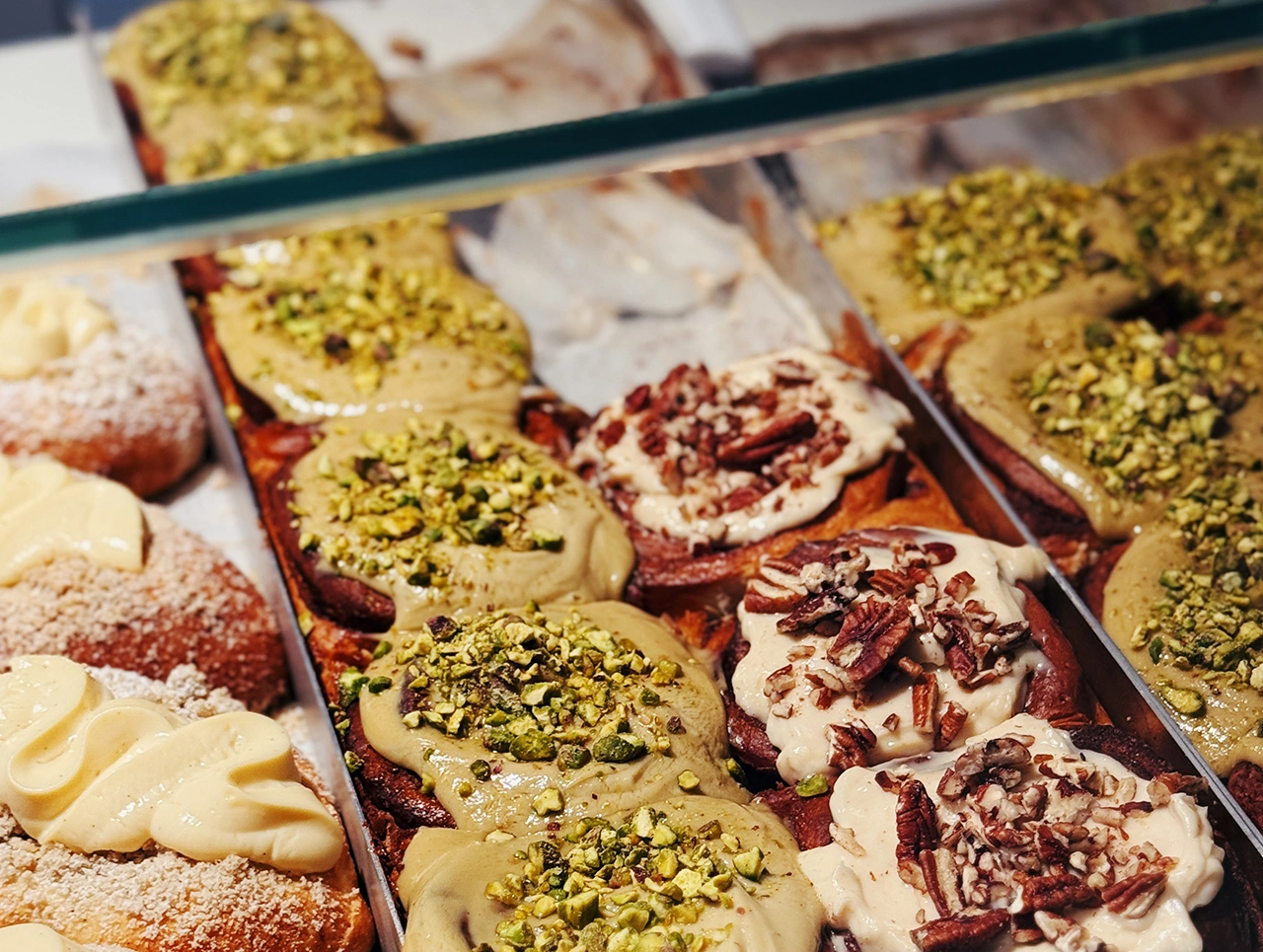 Masełko podbiło nasze serca momentalnie! Kochamy to miejsce za piękny design, unikatową wystawę na specjalnych kobaltowych kolumnach, za sklepik z pięknymi gadżetami, oraz oczywiście za wybitne drożdżówki, cynamonowe i inne słodkości przepełnione masełkiem (nazwa zobowiązuje!).
