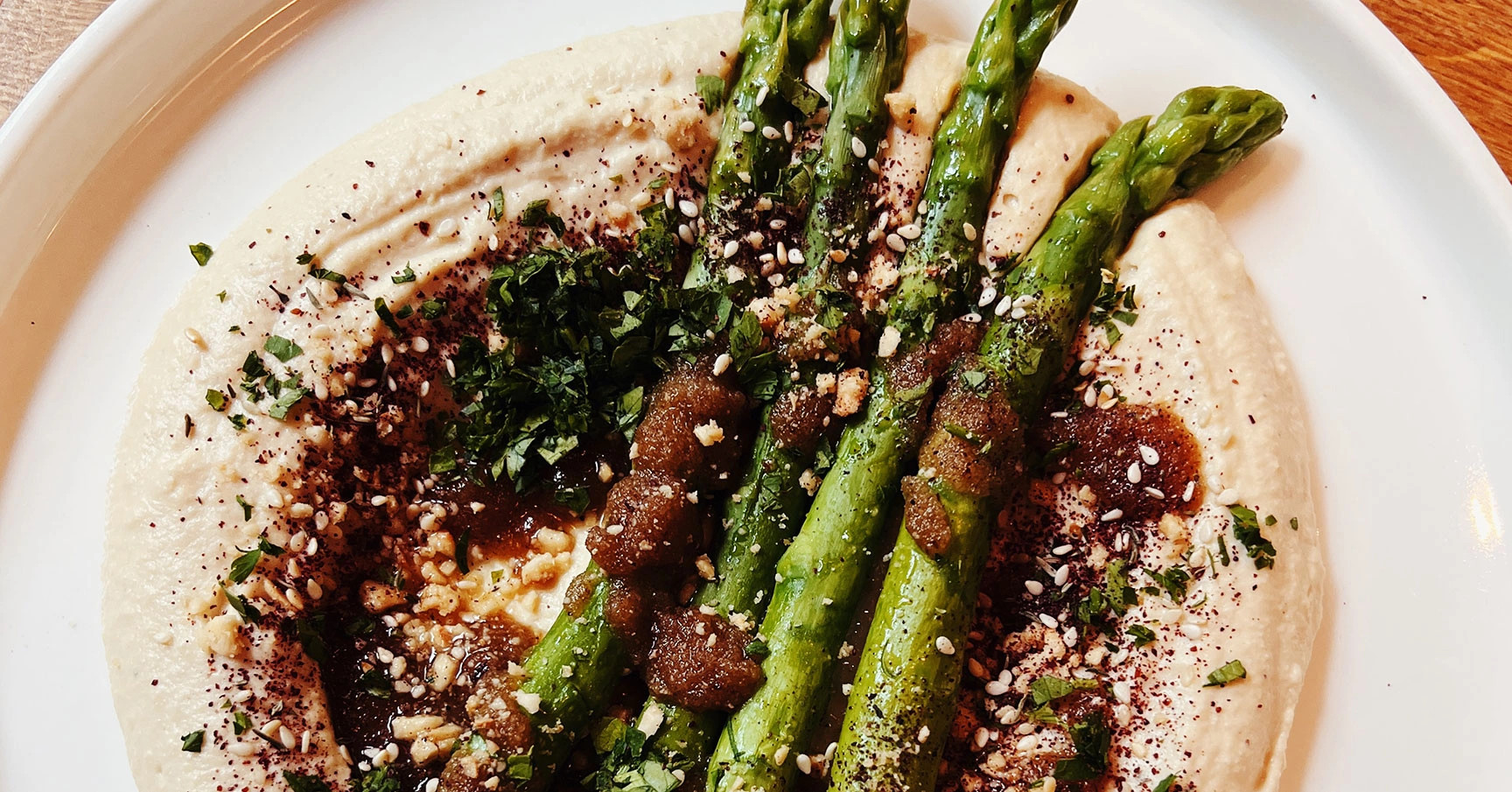 Szparagi w wersji roślinnej! W menu Nadziei znajdziemy m.in. zielone szparagi w cieście filo z serem owczym, labneh z zielonymi szparagami i bułką tartą, kromkę podpiekanego na masełku bio chleba z białymi szparagami i ekologicznymi jajkami, wegańską pajdę z białymi szparagami i roślinną marynowaną fetą, szakszukę z zielonymi szparagami, zupę krem, soczystą sałatkę ze szparagami czy też półmisek szparagów na bułką tartą i serem owczym.