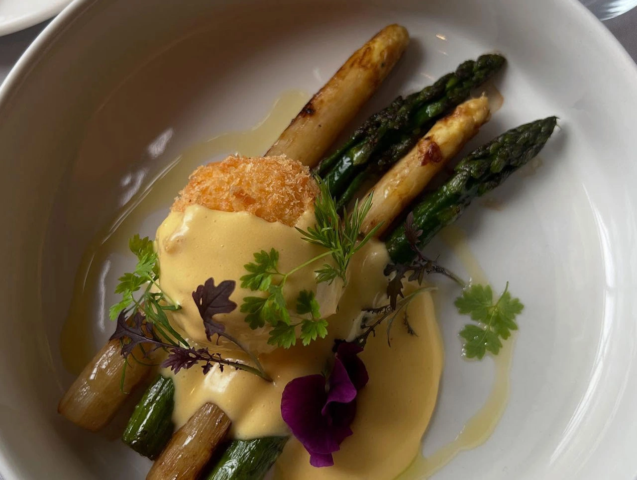 W ich menu szparagowym znajdziecie m.in. croque zielony ze szparagami, croque holenderski z zielonymi i białymi szparagami i z sosem holenderskim oraz danie szparagowe z młodymi ziemniakami, rzodkiewką i jajkiem sadzonym.