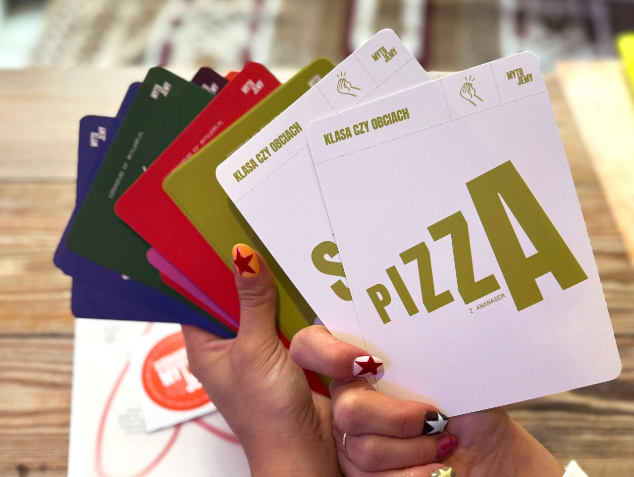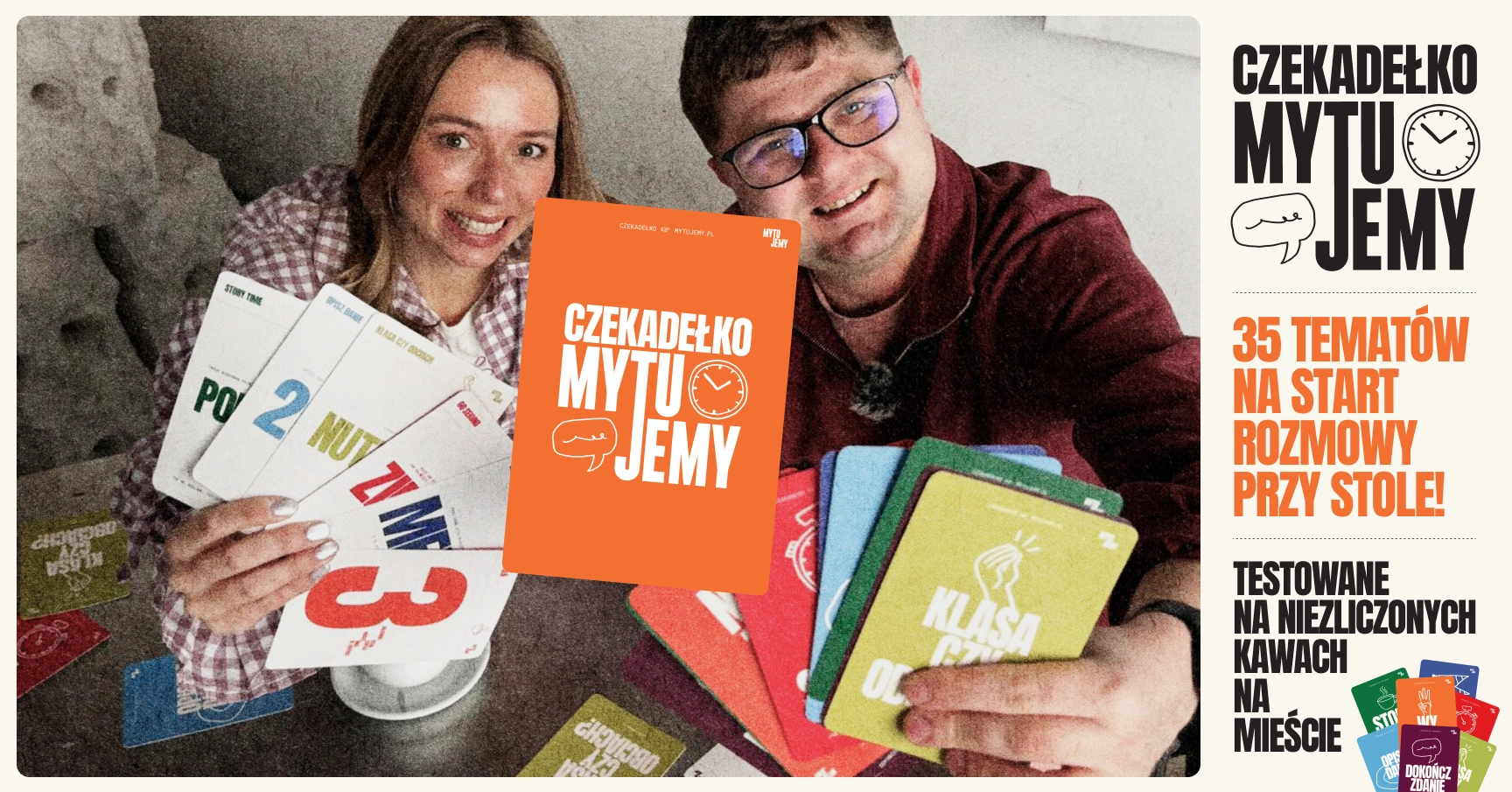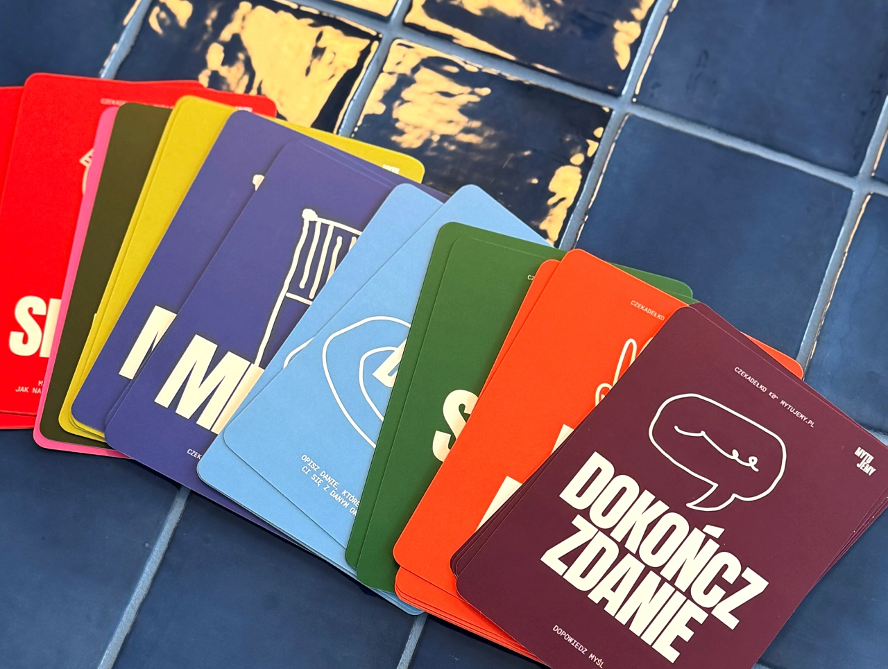 "Czekadełko" to talia 35 kart podzielonych na 7 kategorii, które uruchamiają wspomnienia, opinie, skojarzenia i emocje - raz z przymrużeniem oka, raz zaskakująco szczerze. W zestawie znalazły się również dwa specjalne jokery od samych autorów oraz arkusz naklejek do personalizacji pudełka. Gra działa zarówno w parach, jak i w większym gronie, a zasady można przyswoić w minutę - instrukcja czeka pod wieczkiem.