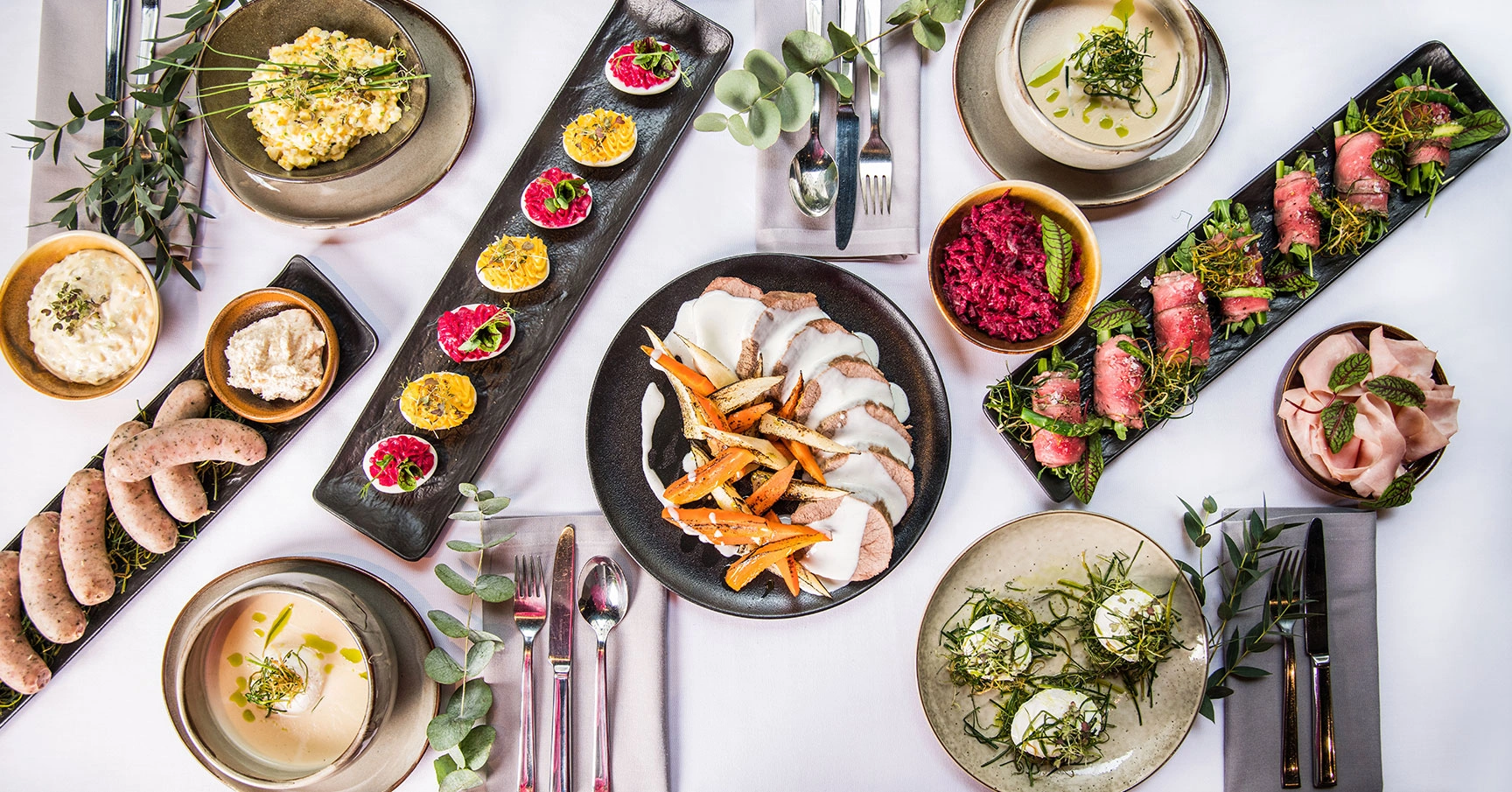 Wśród propozycji znajdą się m.in. wielkanocny żurek na domowym zakwasie z białą kiełbasą, tradycyjne dania mięsne, takie jak konfitowana noga z kaczki czy pieczona szynka, a także szeroki wybór przystawek – od jaj faszerowanych i tatara wołowego, po sałatkę jarzynową i deski polskich wędlin. Nie zabraknie również opcji wegetariańskich oraz bogatej oferty deserów, w tym babki wielkanocnej, mazurków, makowca i sernika.