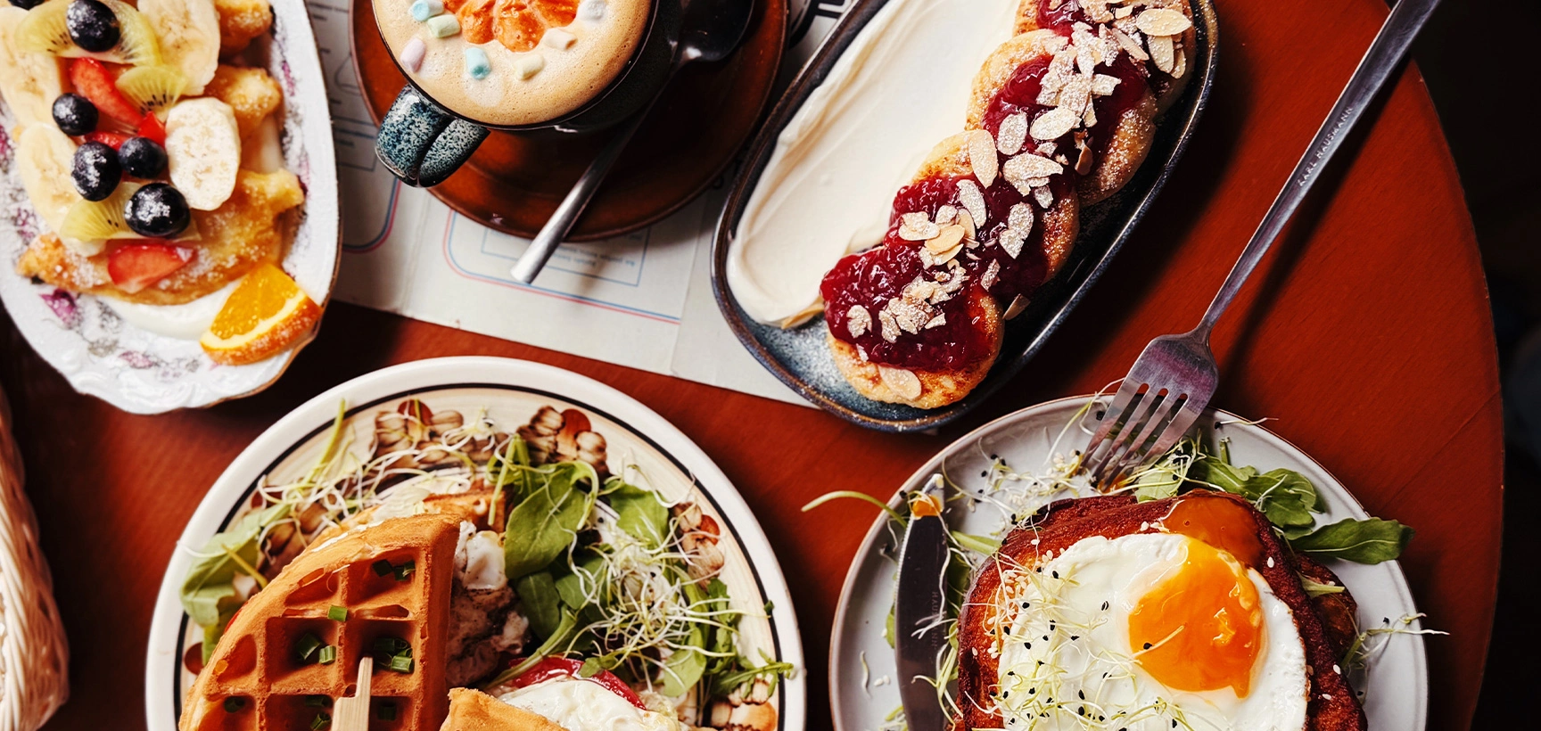 Co można zjeść w Oldskulowej? W menu widać wpływy ukraińskie, które smakują tutaj naprawdę wyśmienicie! Śniadanie można zjeść tutaj angielskie, amerykańskie, wielkopolskie lub lwowskie, a ponadto można zamówić też gofra na wytrawnie, manniki, czyli placuszki z kaszy manny (obie pozycje z sekcji ,,polecajki”), szakszukę czy tost awokado.
