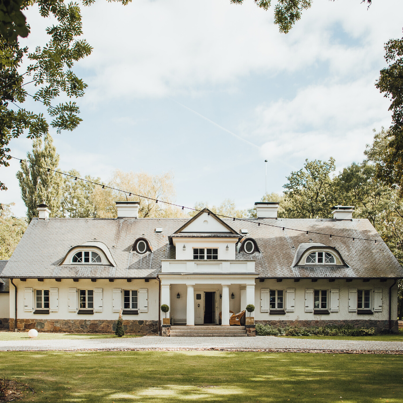 Piękna, biała rezydencja w sercu Puszczy Zielonki. Stylowe wnętrza, malownicze położenie, sprawdzona ekipa stojąca za marką Weranda to zdecydowanie wyróżniki tego konceptu. Znajdziecie tu 3 sale z możliwością organizacji wesel do 150 osób. To także idealne miejsce na ślub plenerowy – willa znajduje się tuż obok niebieskiego jeziora z kwitnącymi liliami. Tuż obok zielony las, cisza, spokój… naprawdę można spełnić tu swoje najbardziej romantyczne marzenia! P.S. Po wszystkim na nocleg w luksusowych apartamentach zaprosicie tu 66 gości.