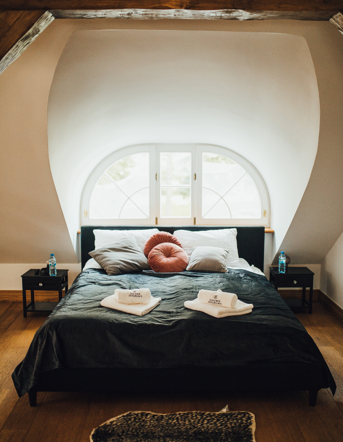 W Separowie czujesz się nieco jak w domu… po wejściu na górę znajduje się piękna sypialnia z poziomym oknem. Tuż obok tarasy, salonik do czytania. Ptaki śpiewają tu najgłośniej na świecie. A stare dęby w ogrodzie opowiadają historie rozmów, sytuacji i spotkań, które odbywały się tu przez ostatnie stulecia…