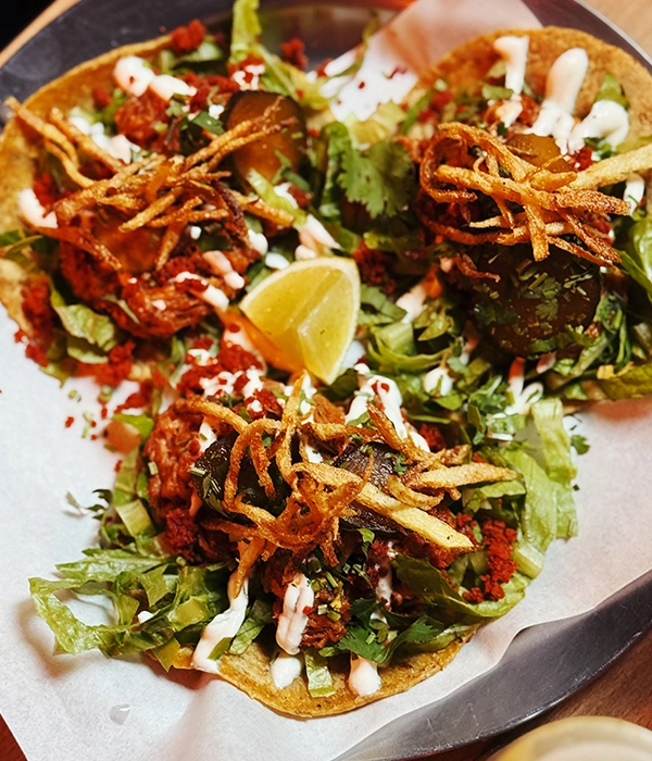 Na rozgrzewkę? Totopos – czyli chrupiące nachosy z trzema salsami. Proste, ale absolutnie uzależniające! Ale prawdziwe show w Taco Jesus kradną tacosy – serwowane na autentycznych, kukurydzianych plackach i dostępne w kilku wariacjach. Jest kurczak, wołowina, klasyczna wieprzowina w stylu cochinita (totalny sztos – w wersji kwaśnej, mięso marynowane w cytrusach według przepisu babci właściciela – serio, można się zakochać!) oraz carnitas (słodka wersja wieprzowiny), a dla roślinożerców – batat.